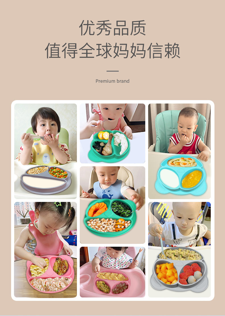 您的位置:首頁 > 產(chǎn)品中心 > 硅膠嬰童用品 > 硅膠碗 > 吸附式硅膠分格餐盤