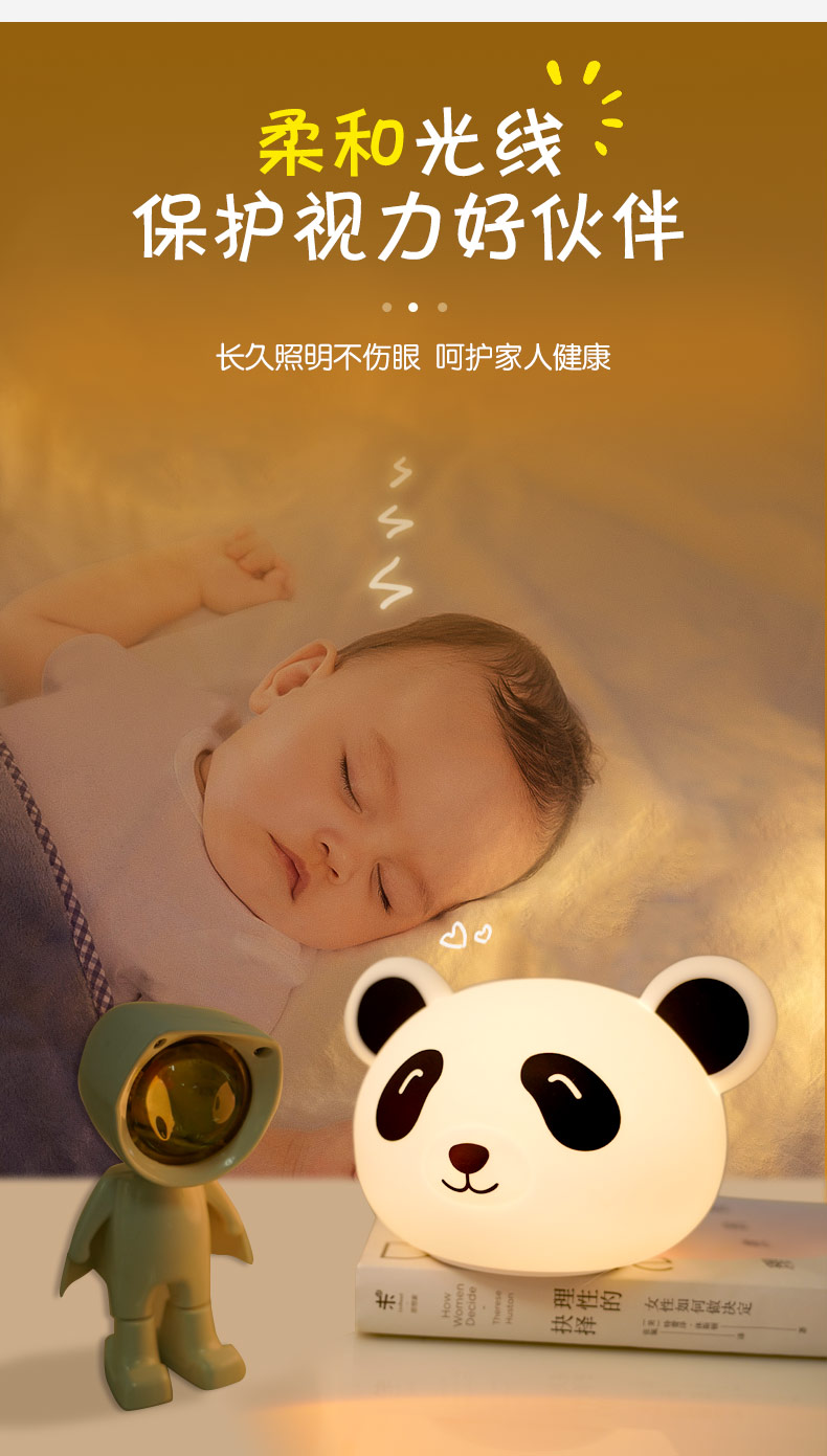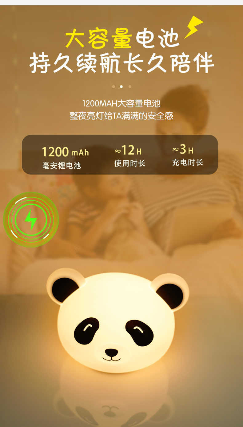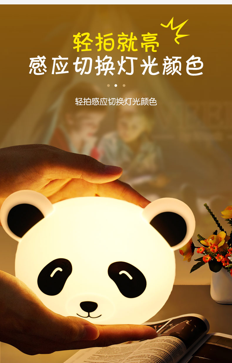 熊貓拍拍燈 創(chuàng)意夜燈硅膠卡通發(fā)光玩具充電拍拍燈 可加印LOGO批發(fā)