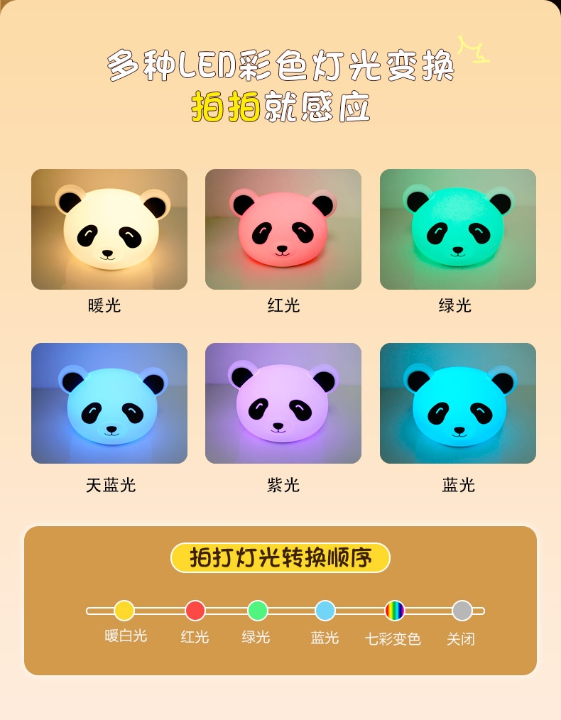 您的位置:首頁(yè) > 產(chǎn)品中心 > 硅膠家居用品 > 拍拍燈 > 熊貓拍拍燈 創(chuàng)意夜燈硅膠卡通發(fā)光玩具充電拍拍燈 可加印LOGO批發(fā)